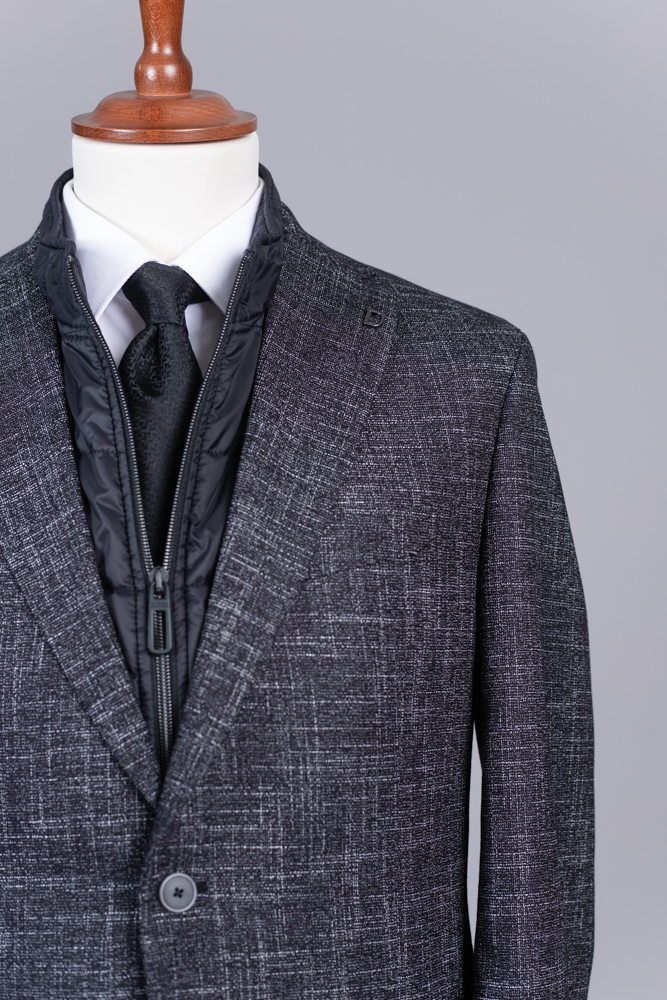 Ένα μοντέρνο σακάκι σε συνδυασμό μαύρου με εκρού με αφαιρούμενο γιλέκο “μόστρα”. Πρόκειται για ένα ιδιαίτερα καλοραμμένο και ελαφρύ σακάκι από υφάσματα αναγνωρισμένης ποιότητας. Η γραμμή του είναι slim fit, ιδανική για άνδρες που έχουν όγκο στην περιοχή της κοιλιάς καθώς αγκαλιάζει όμορφα και ταυτόχρονα οι βάτες στους ώμους δεν προεξέχουν. Με μεγάλη προσοχή στον σχεδιασμό και τα πατρόν η DIGEL δίνει ελευθερία κινήσεων στον άνδρα. Τα χρώματα του είναι έτσι επιλεγμένα ώστε να συνδυάζονται εύκολα με αρκετά χρώματα παντελονιών προσδίδοντας ένα μοντέρνο στυλ.