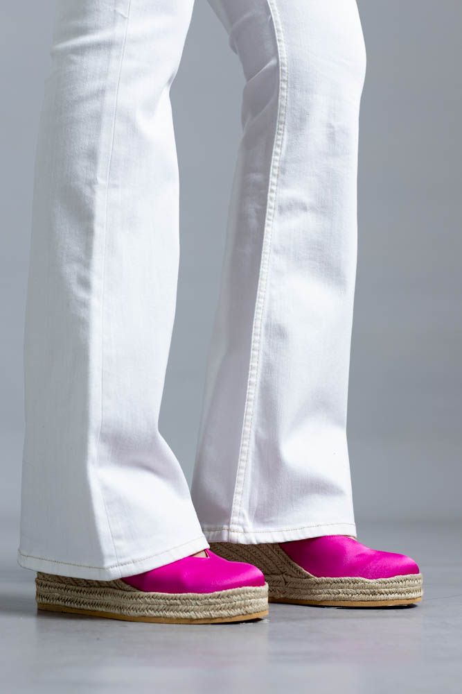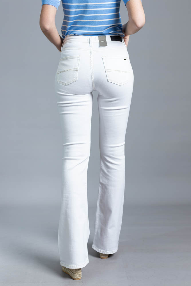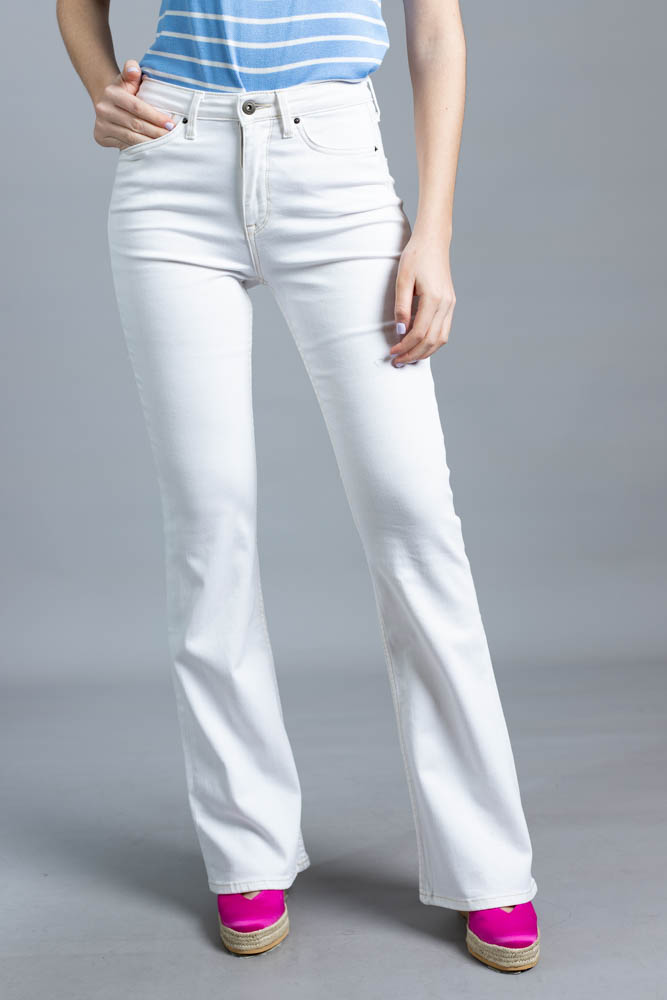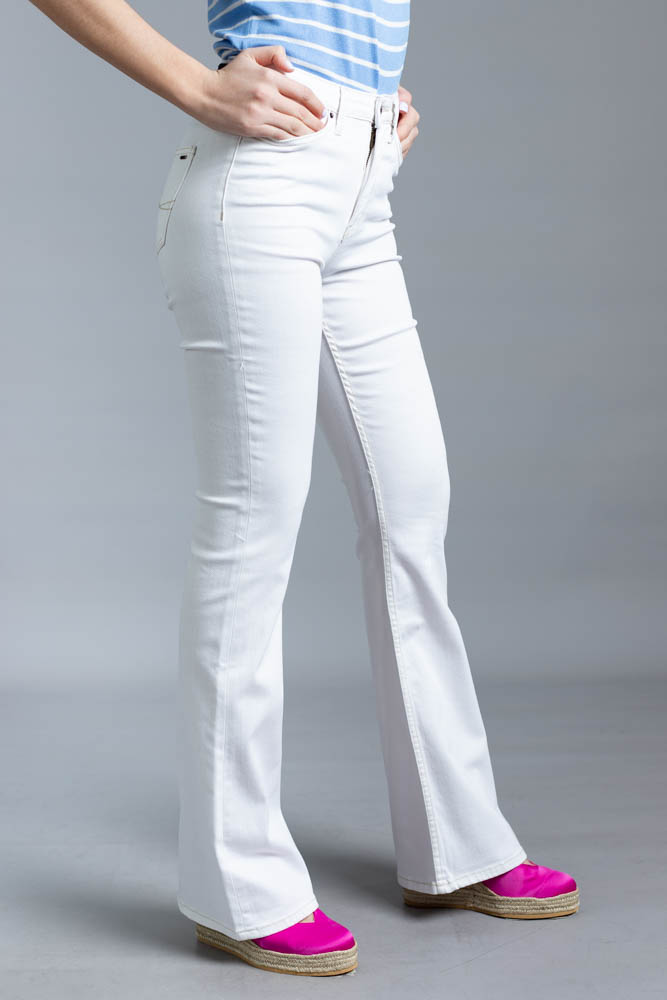 Ψηλόμεσο jean παντελόνι καμπάνα σε άσπρο χρώμα.