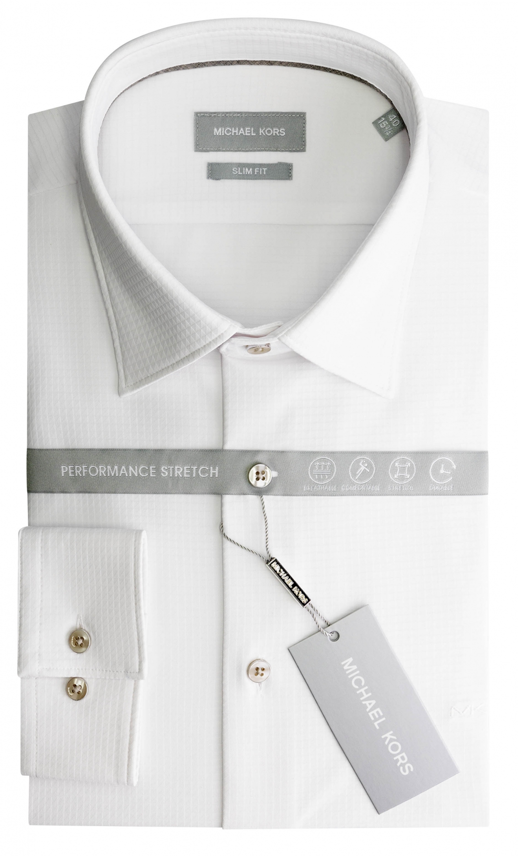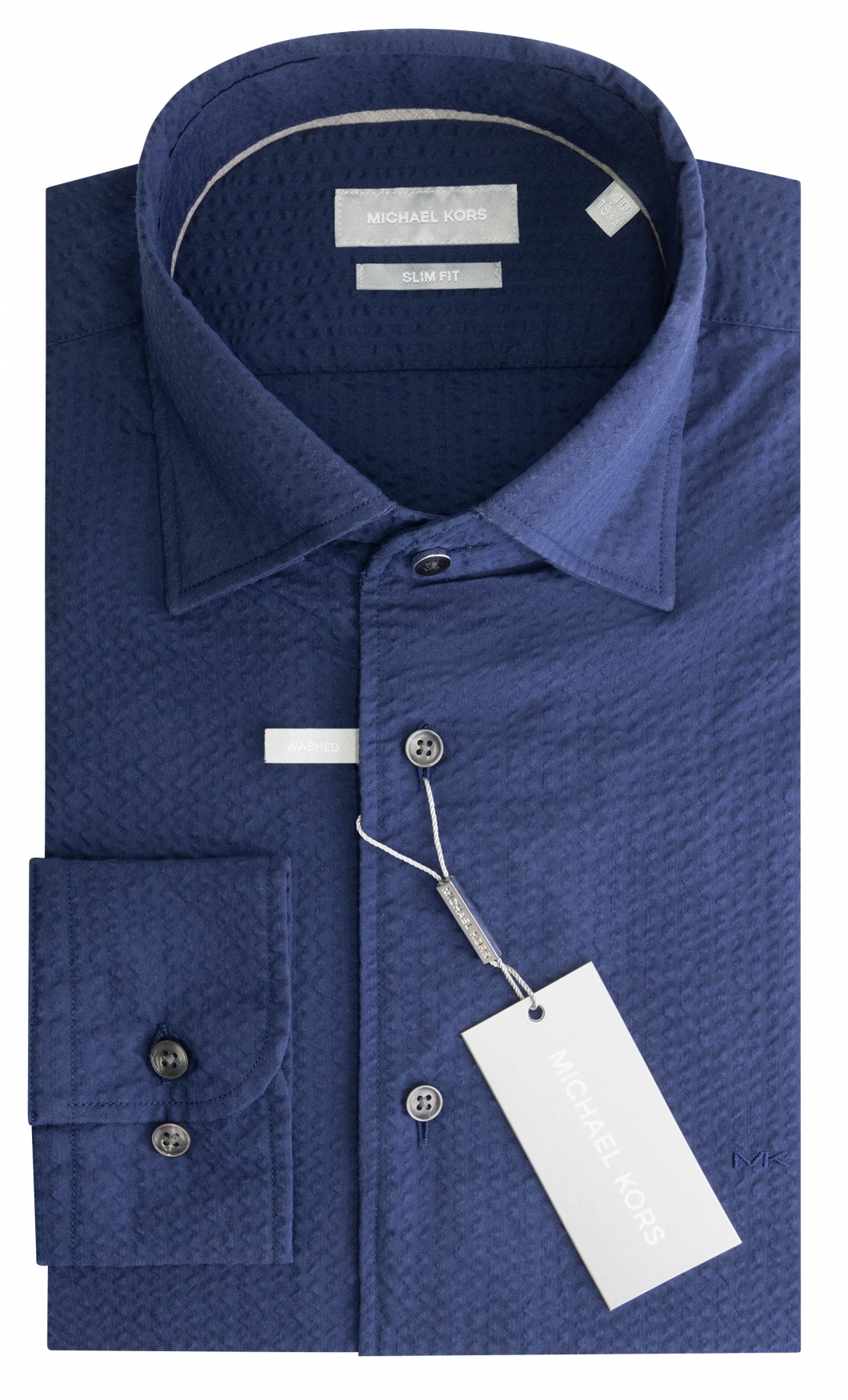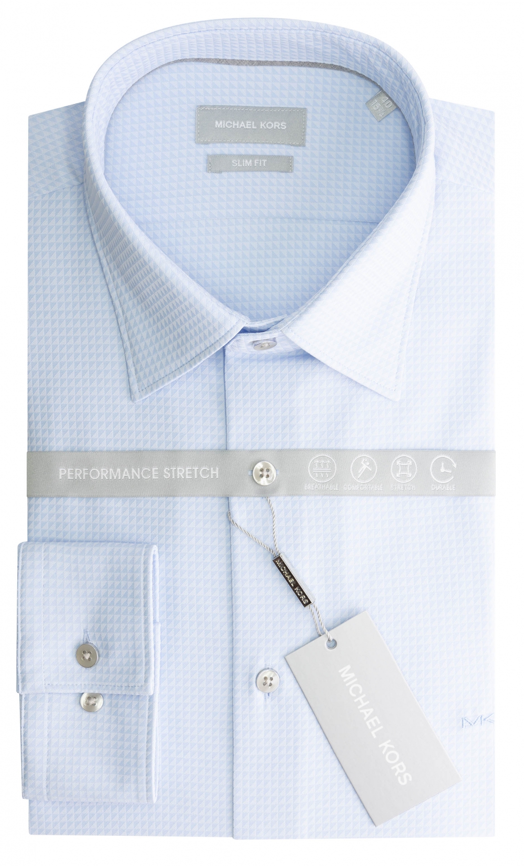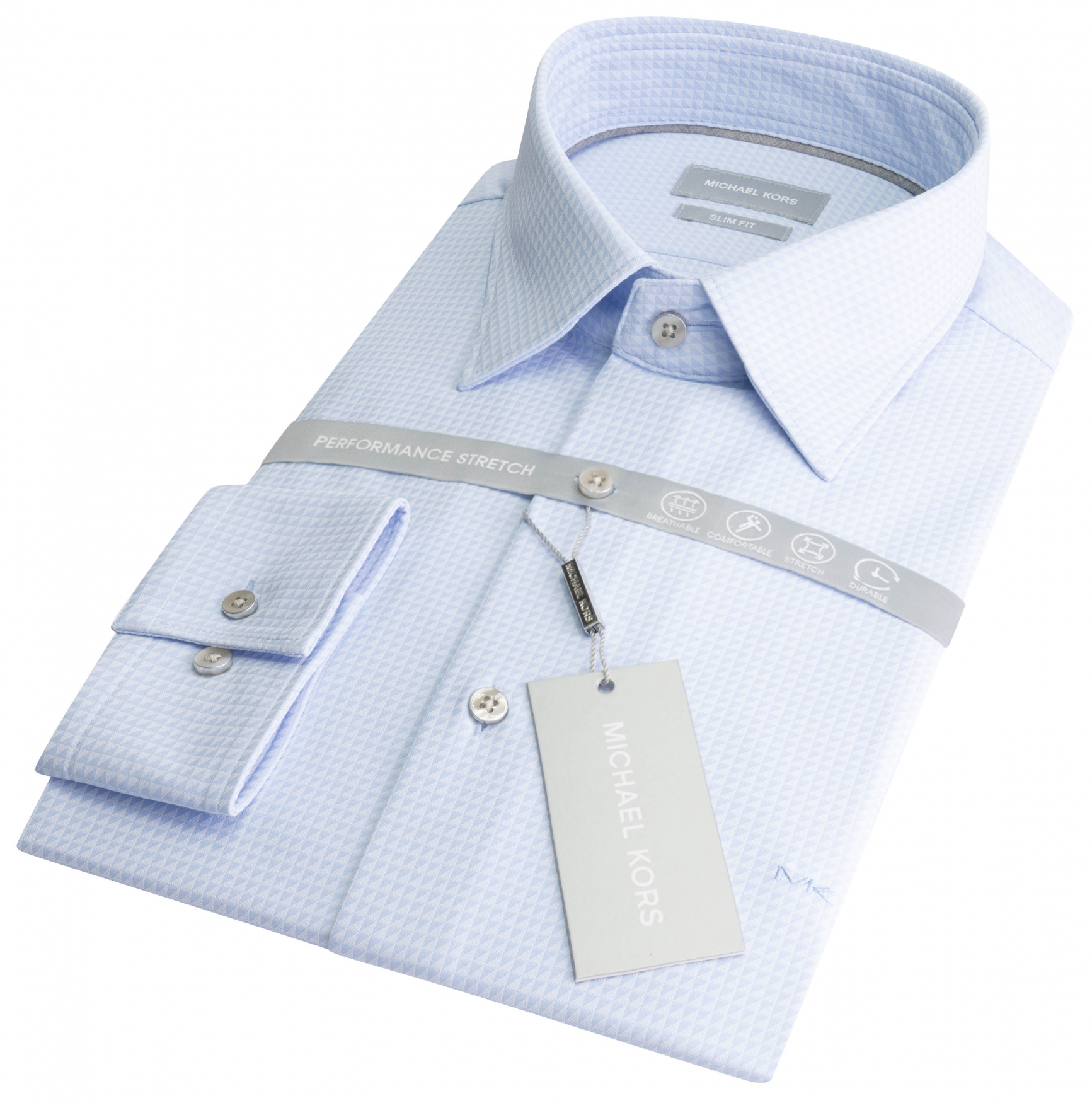 Πρωτόγνωρα ελαστικό, αυτό το σιελ πουκάμισο σχεδιασμένο από τον διάσημο σχεδιαστή Michael Kors ξεφεύγει από τα συνηθισμένα. Κεντημένο διακριτικό λογότυπο στο στήθος και σχεδιαστό ύφασμα σε slim fit εφαρμογή.