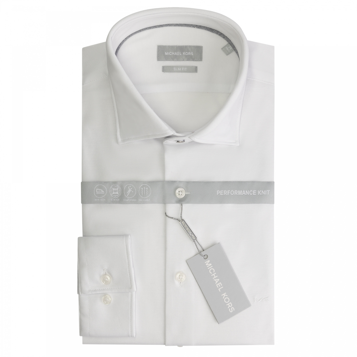 Βαμβακερό λευκό knited(πλεκτό) πουκάμισο, αυτό το πουκάμισο σχεδιασμένο από τον διάσημο σχεδιαστή Michael Kors ξεφεύγει από τα συνηθισμένα. Με κεντημένο διακριτικό λογότυπο στο στήθος σε γραμμή slim fit.