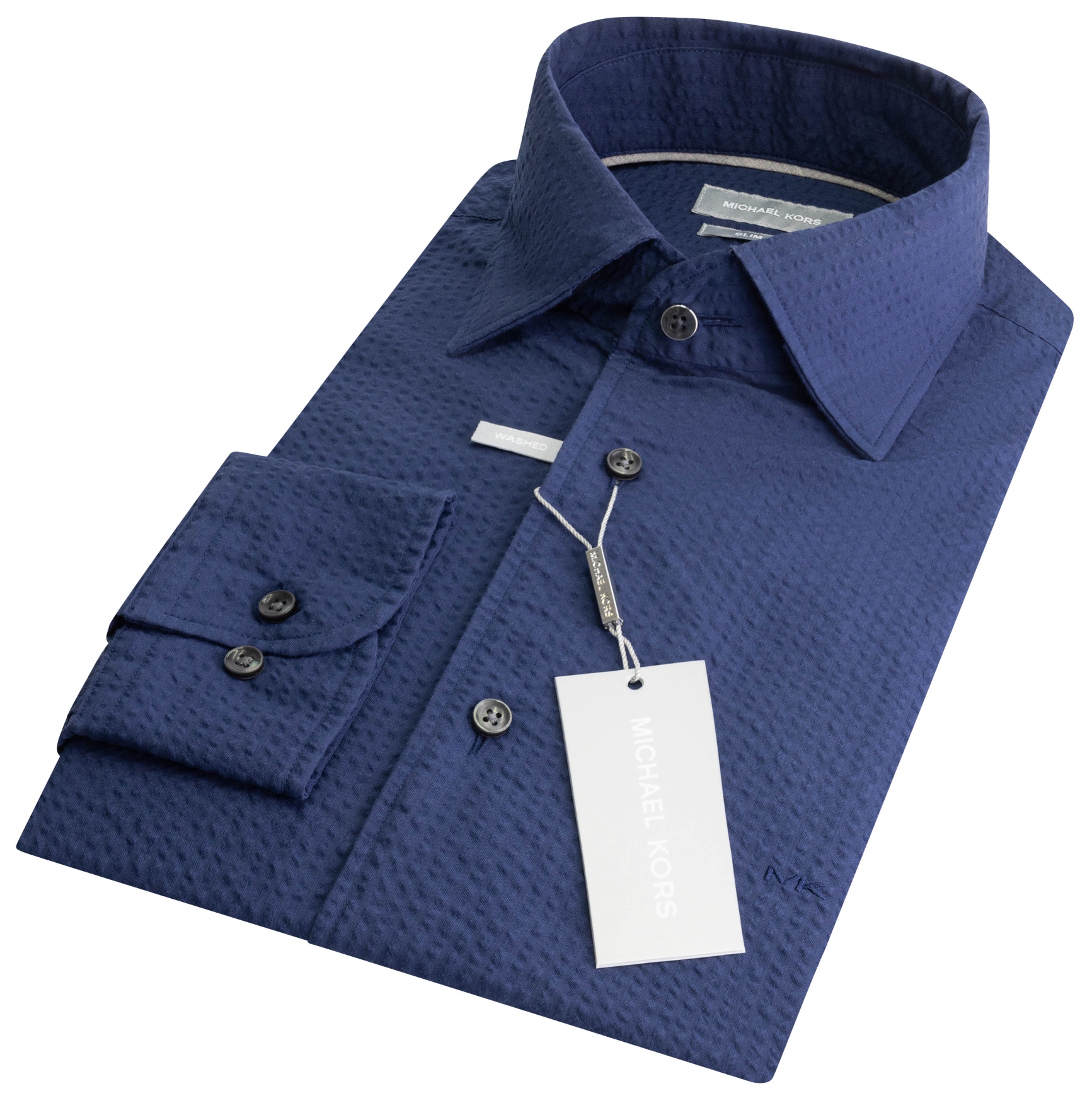 Πρωτόγνωρα ελαστικό και δροσερό, αυτό το μπλε πουκάμισο σχεδιασμένο από τον διάσημο σχεδιαστή Michael Kors ξεφεύγει από τα συνηθισμένα. Κεντημένο διακριτικό λογότυπο στο στήθος και ανάγλυφο (seersucker) ύφασμα σε slim fit εφαρμογή.