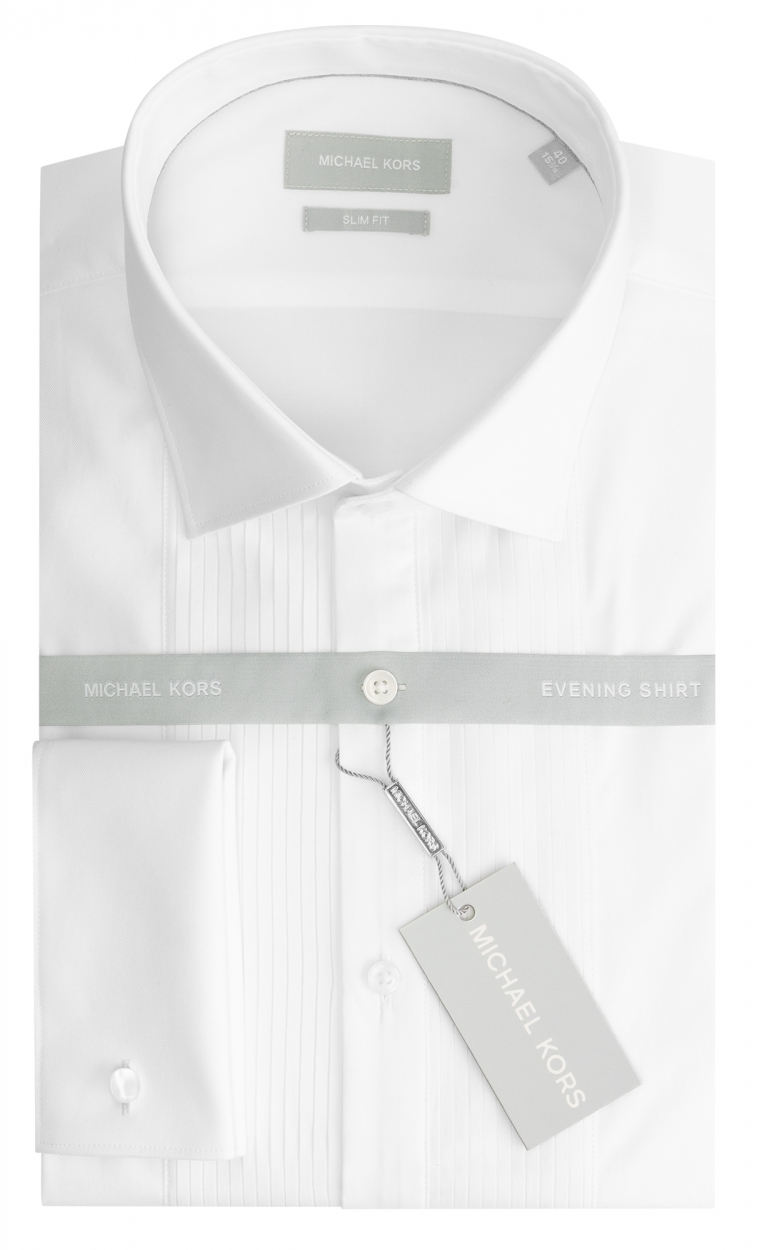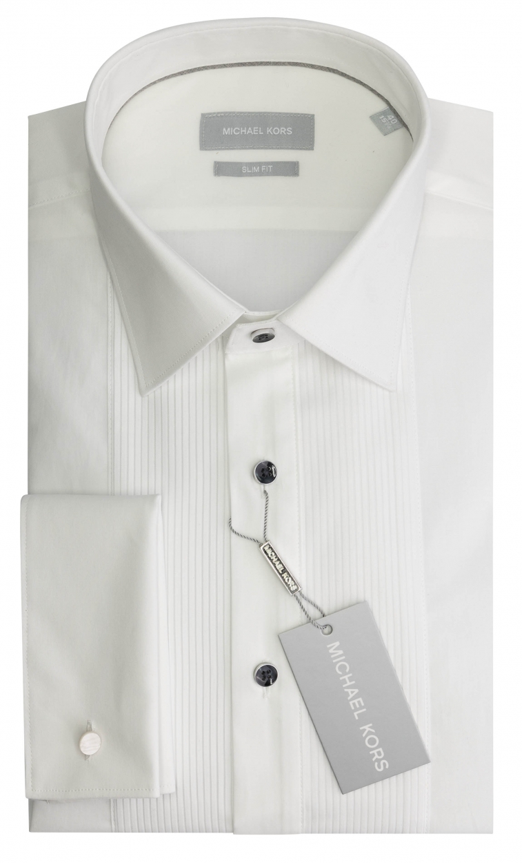 Κομψό, ελκυστικό με πλισέ ύφασμα στο στήθος αυτό το λευκό πουκάμισο σχεδιασμένο από τον διάσημο σχεδιαστή Michael Kors ξεφεύγει από τα συνηθισμένα. Το πλισέ ύφασμα και τα μαύρα κουμπιά το καθιστά το πιο επίσημο πουκάμισο κυρίως για εμφανίσεις black tie.